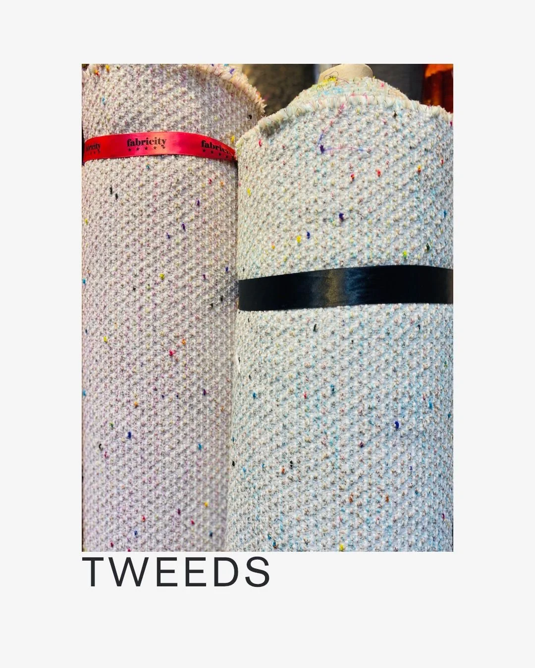 A luxurious couture tweed by Dutel Création, renowned for its exquisite textile craftsmanship.