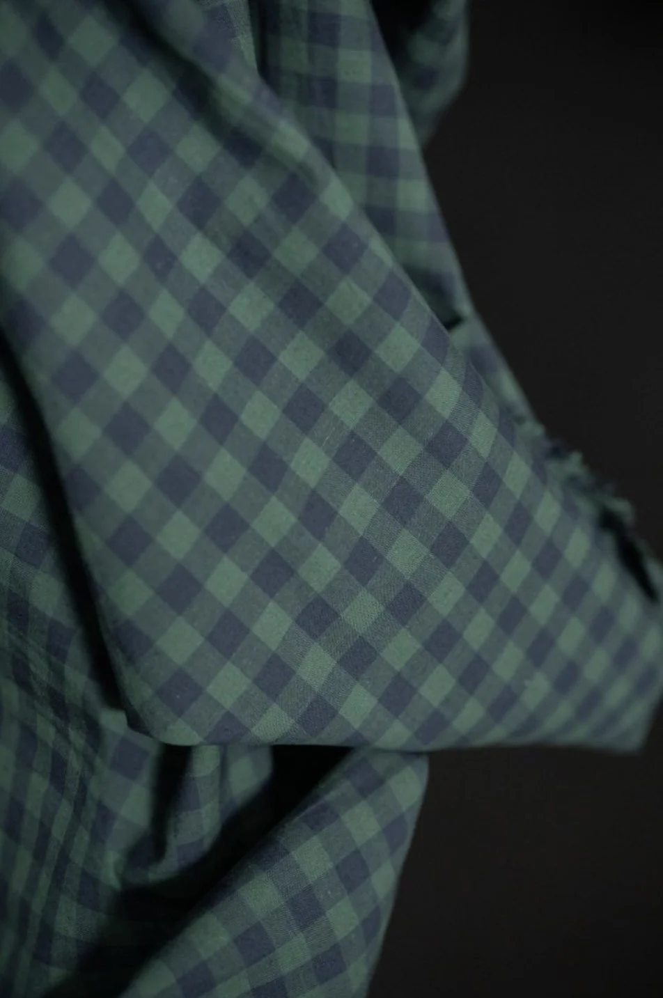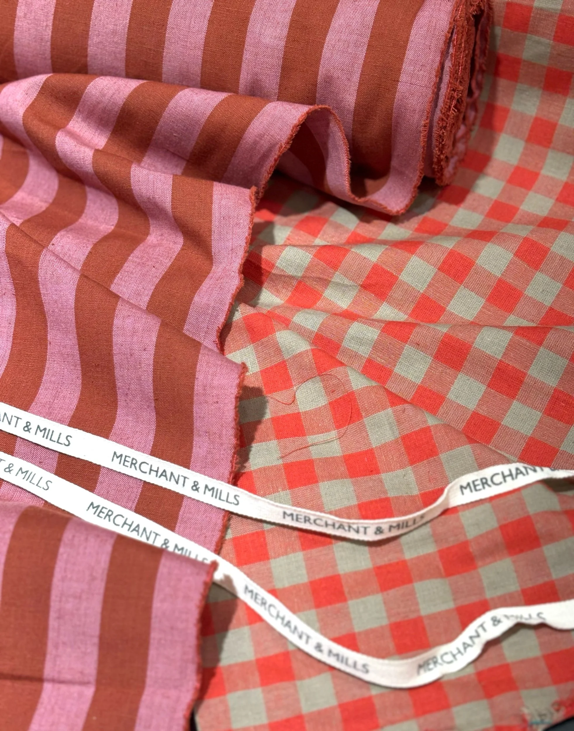 Part of Merchant and Mills Luminaire Collection. A soft cotton and linen blend in a sophisticated check of black and coffee tones.